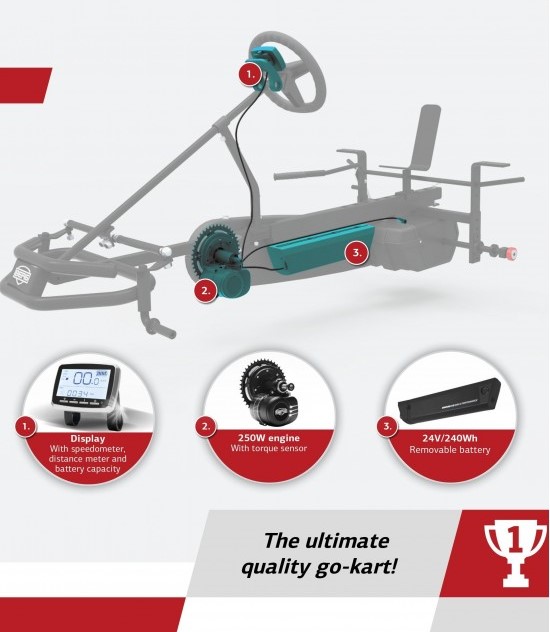 Vrei sa conduci fara griji cu pedale electrice? Atunci, avem un sistem inovator E-BERG go-kart pentru tine.